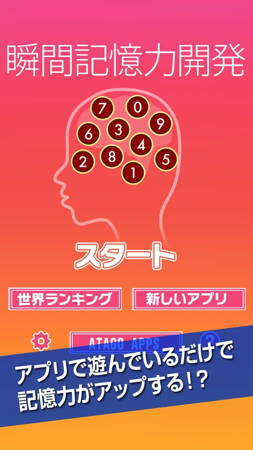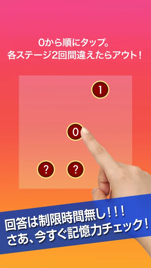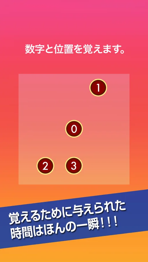 画面上に一瞬だけ表示される数字を覚え、小さい順にタッチしてください。