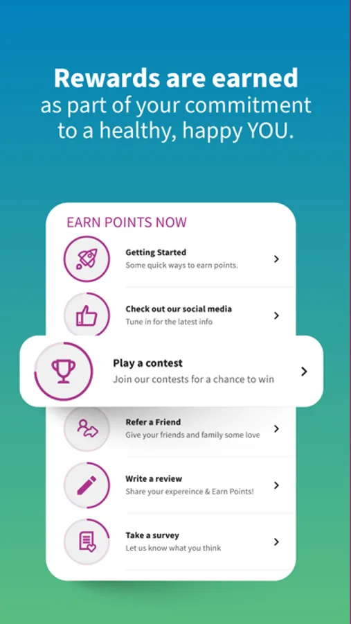The Patient Rewards Hub™ mobile application enables patients or any authenticated members allowed by their associated practice, the ability to engage in fun filled entertainment or utilize practice communication tools such as; reward, games, contests, social, messaging, reminder, health compliance and prize redemption programs.