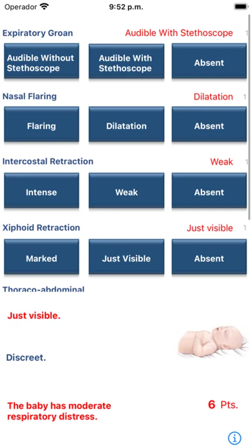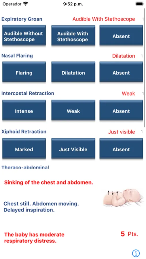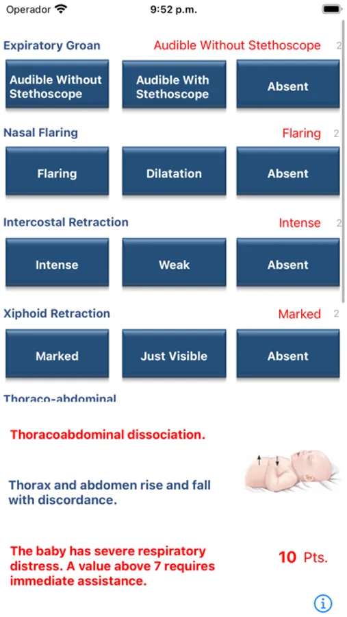 The App Silverman Score lets you evaluate respiratory distress of a newborn, based on five criteria. Each parameter is quantifiable and the total sum is interpreted in terms of respiratory distress.