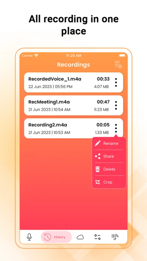 Record meetings, conversations, lectures, and more in the easiest way. You can email recordings from Voice Recorder. It also supports direct file sharing through iTunes. and you can modify your sound by adding effects and changing speed, pitch echo, etc.