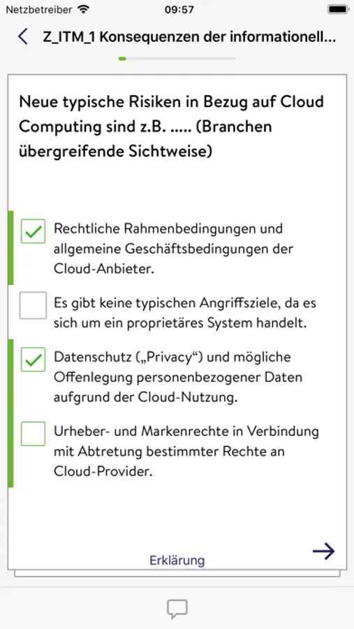 * Lernkarten bieten Kontexte und Erklärungen zu den Fragen und Antworten