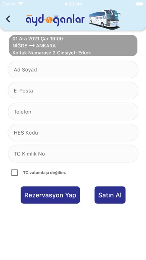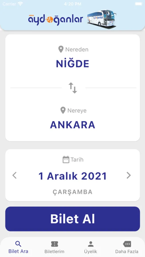 Niğde Aydoğanlar'in şehirlerarası ulaşım biletlerinin satılmasını sağlayan bir iPhone uygulamasıdır.