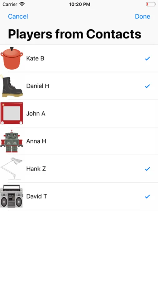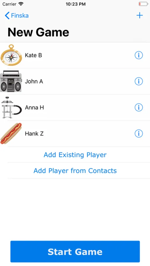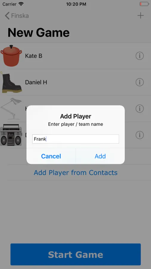 1. Start a New Game by adding Player / Team names. You can auto import players names from your contacts or add existing players. Once all names are entered start the game