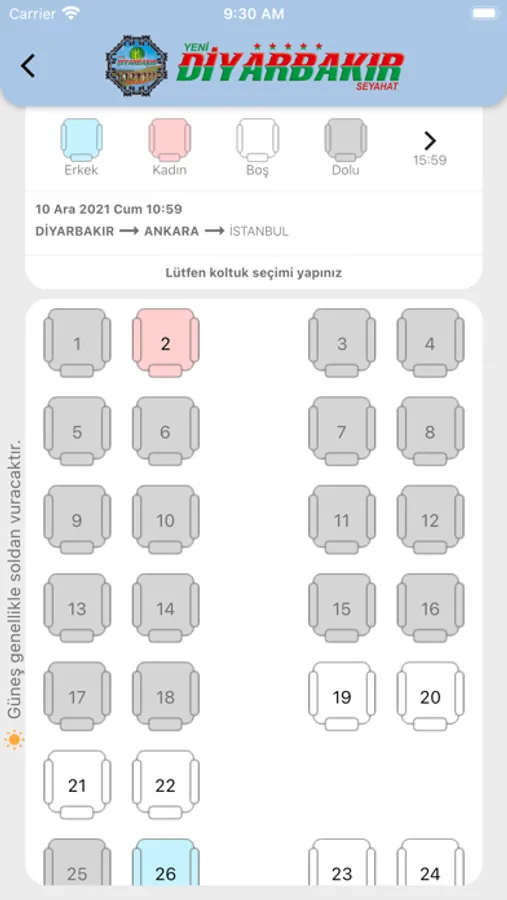 Yeni Diyarbakır Seyahat'in şehirlerarası ulaşım biletlerinin satılmasını sağlayan bir iPhone uygulamasıdır.