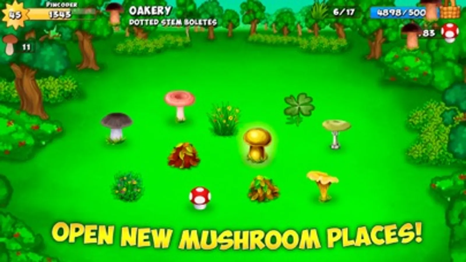 - Open new mushroom places and gather a special kind of mushrooms in each of them