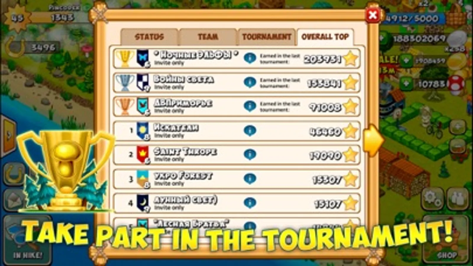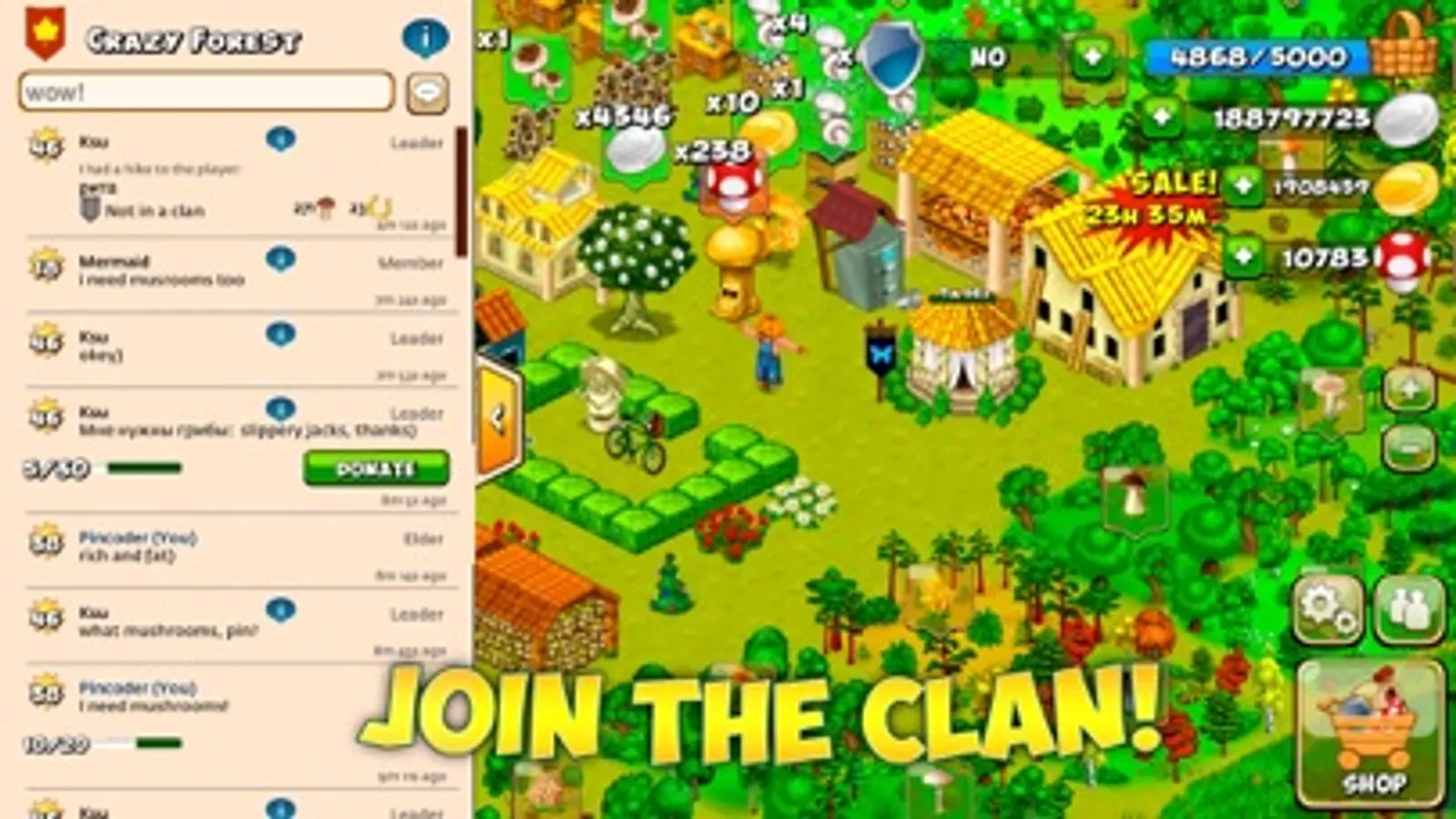 - Join a clan or create your own, communicate in a chat and help each other mushrooms, participate in a tournament and receive a gold award