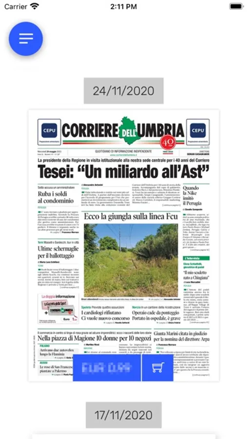 Puoi scegliere l’edizione del giorno, o un’edizione dell’archivio, e consultare gratuitamente la prima pagina o acquistare l'edizione completa. Sfogliando le pagine del quotidiano, ingrandendo i contenuti, ruotando il dispositivo, sarai libero di leggere in piena comodità e nella modalità preferita.