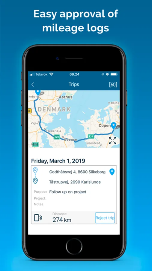 - Approval notifications for employees by email or directly in the Mileage Book Approval app