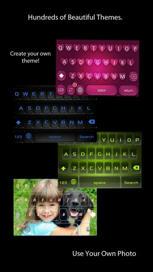 - Use your own picture for keyboard background (pets, family, celebs, etc)