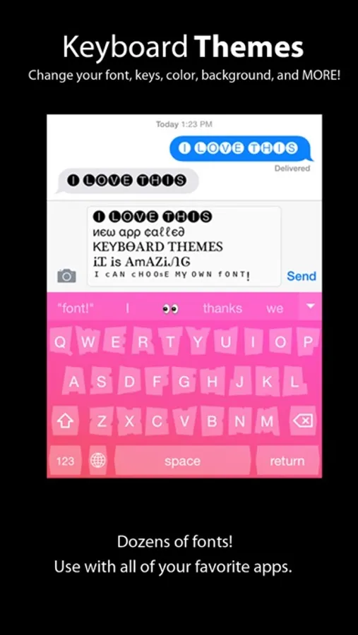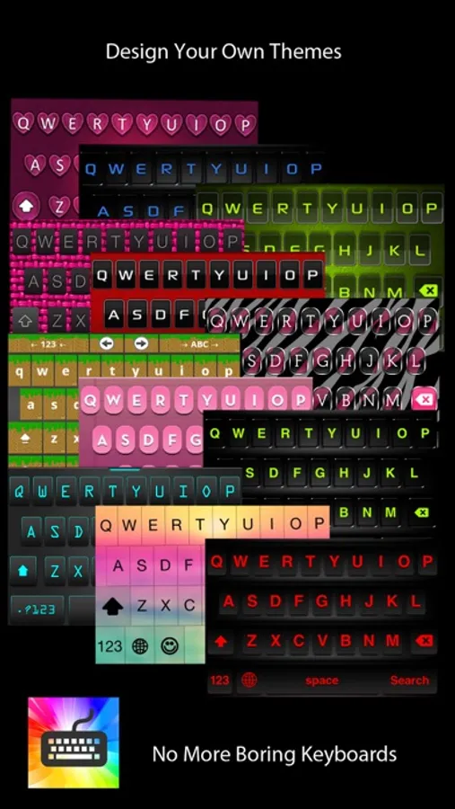 Choose from dozens of themes or create your own! You can get a new cool keyboard and not use the old boring keyboard. Be the envy of all of your friends with awesome cool keyboards!