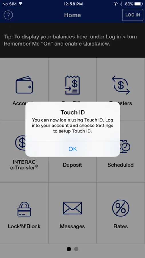 To take advantage of the full functionality of this app, you must already be registered and have logged in to online banking. If you are not an online banking member, you can still use the Branch/ATM locator and our Contact Us information.