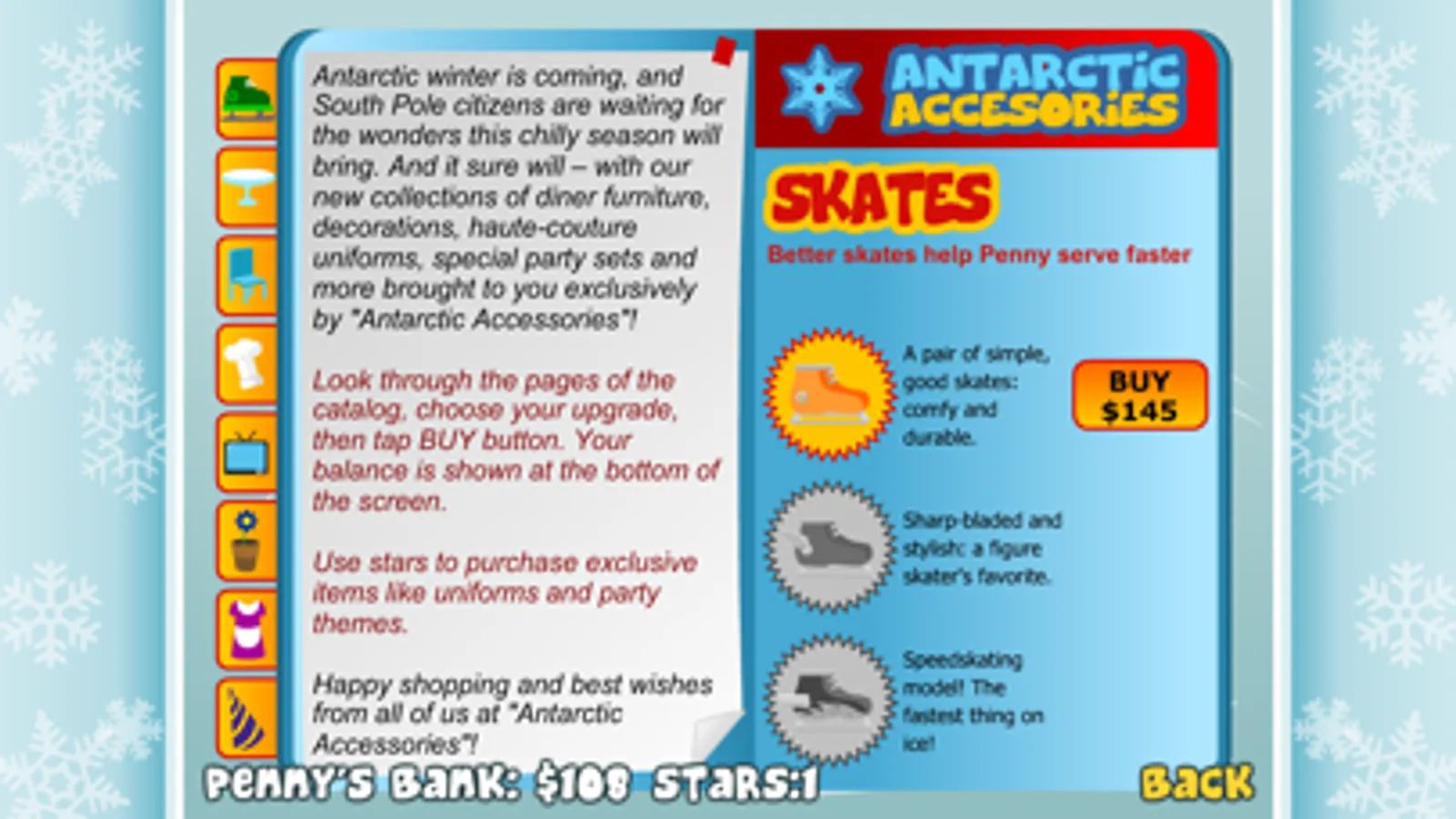 At the start, you are managing a restaurant in one area of the Antarctic, but your goal is to expand the chain to the whole area - Become the diner legend of the Antarctic!