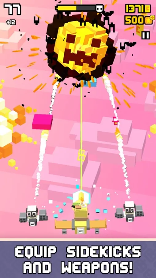 Blast, swoosh and soar your way through waves of madness, from bulk buy shopping fanatics to car throwing condors and pirate ships in Shooty Skies!