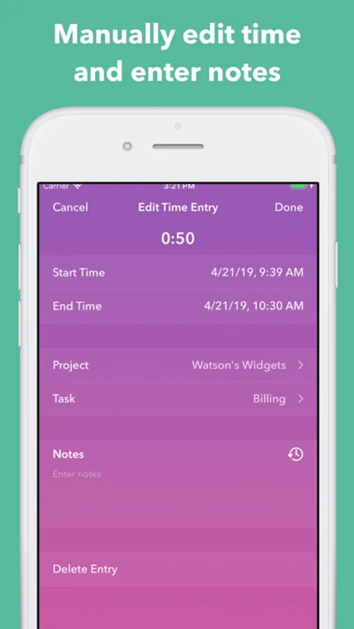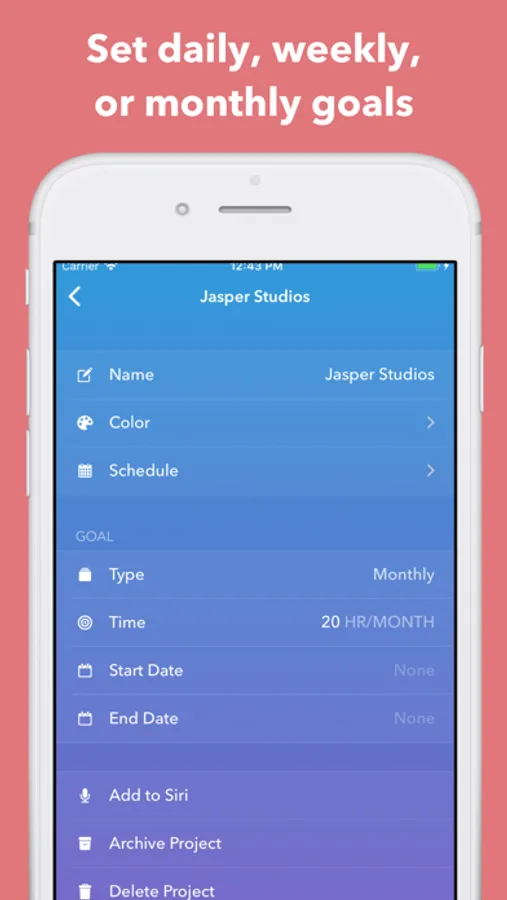 Tracking time is as easy as a single tap. You can start and stop a timer in the app, a handy Notification Center widget, or even from your Apple Watch. When you've reached your daily goal for a project, Manifest can congratulate you with a notification, letting you know it's time to move to the next task.