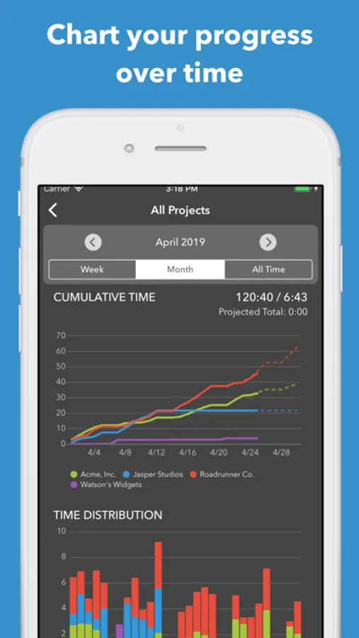Manifest tracks your time and helps you set and achieve time-tracking goals. Make sure you spend the right amount of time on each of your projects!