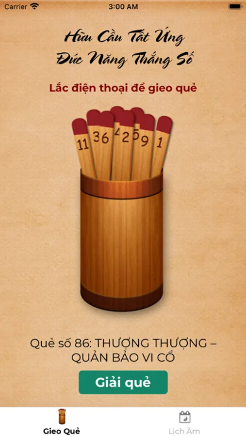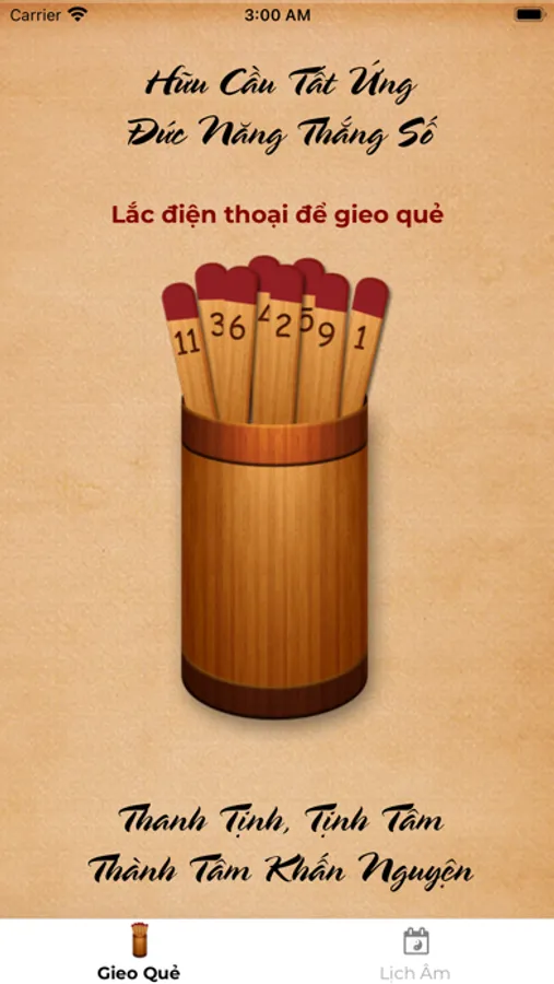 Ứng dụng Gieo Quẻ, sẽ mang lại cho bạn nhiều điều thú vị. Sự may mắn, tránh khỏi những điều không hay trong cuộc sống trong năm mới, tháng mới, ngày mới.
