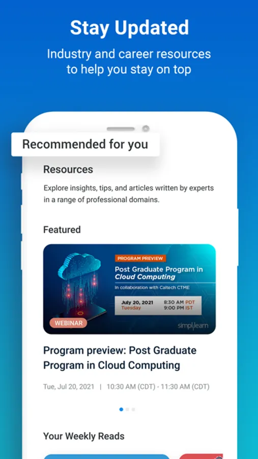 courses, Simplilearn has got you covered. Our online learning app makes it easy to learn