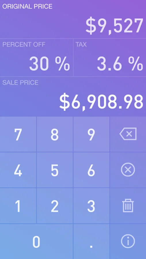 Discount Assistant is a clean and handy calculator that helps you find out the exact price to pay for an item with discount and sale tax.