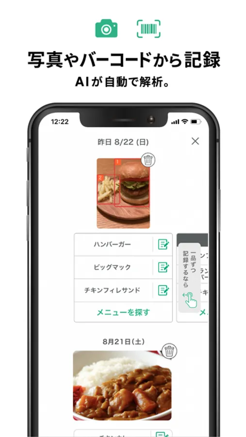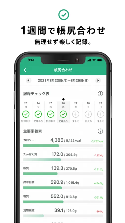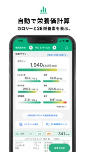 カロリーのみでなく、糖質やたんぱく質の管理ができるようになっていますので、ロカボ・ダイエットや糖質制限にもご活用いただけます。