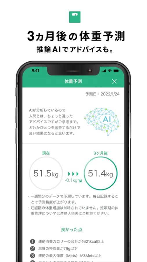 日々の体重と目標体重、目標期間から、1日の目標栄養素を計算し