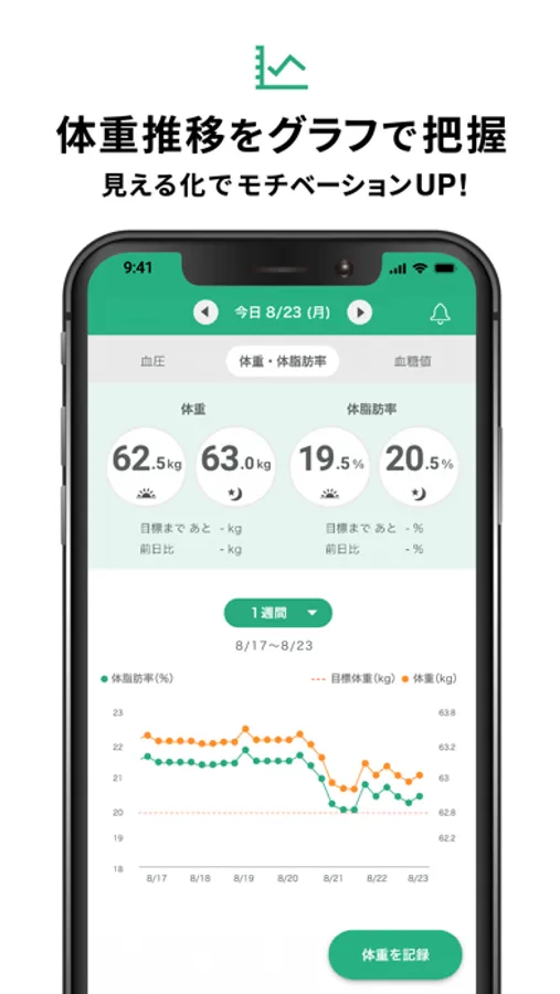 ヘルスケアアプリから体重・体脂肪率・歩数・血圧・心拍数・血糖値のデータをカロミルに連携することができます。