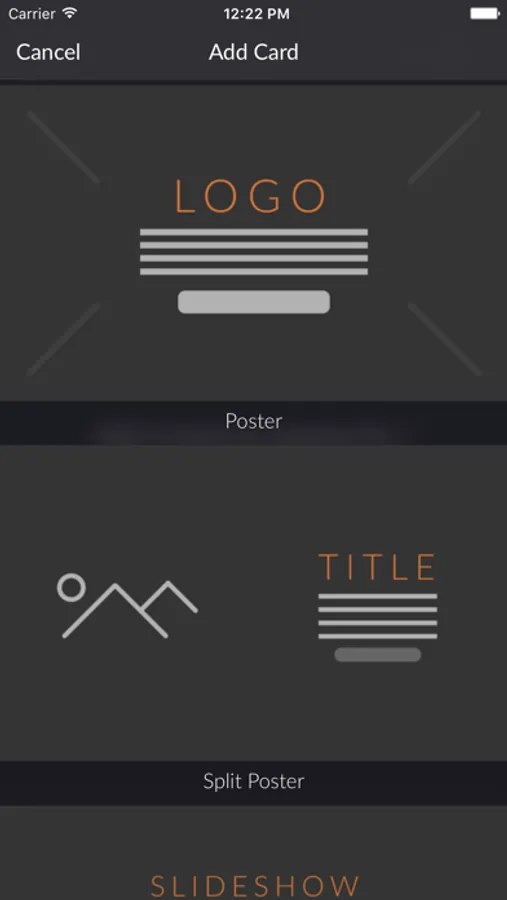 There are many types of Cards such as posters, slideshows, maps, contact forms, galleries, social media links, and more. Each Card will help you add a unique element to your site.
