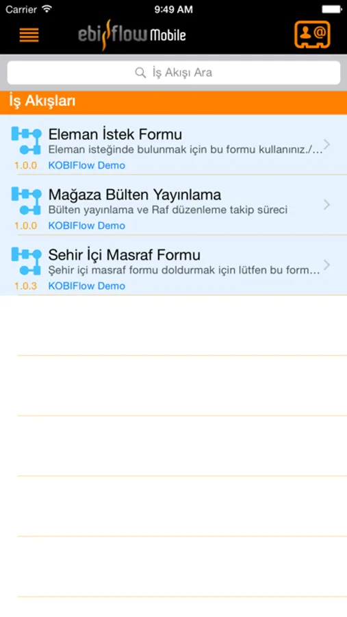EBIFlow BPM sunucusunun mobil client uygulaması