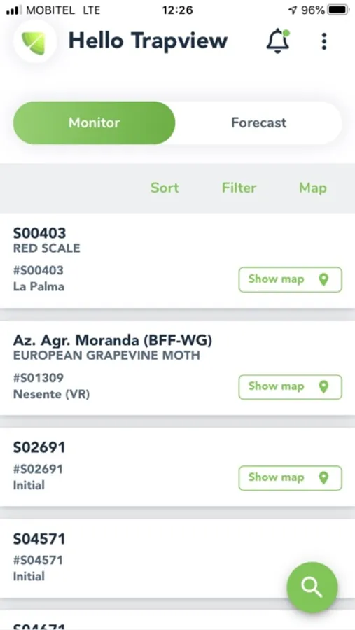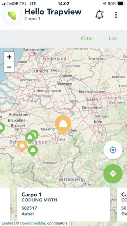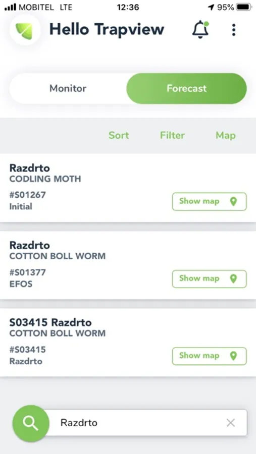 Trapview provides overview of target pest population and its future development scaling from a single location to entire regions.
