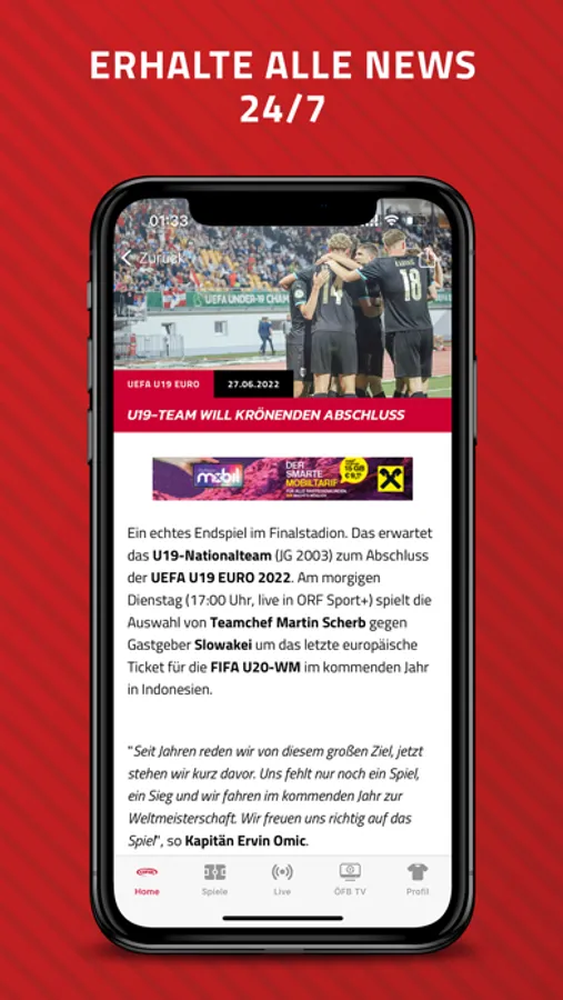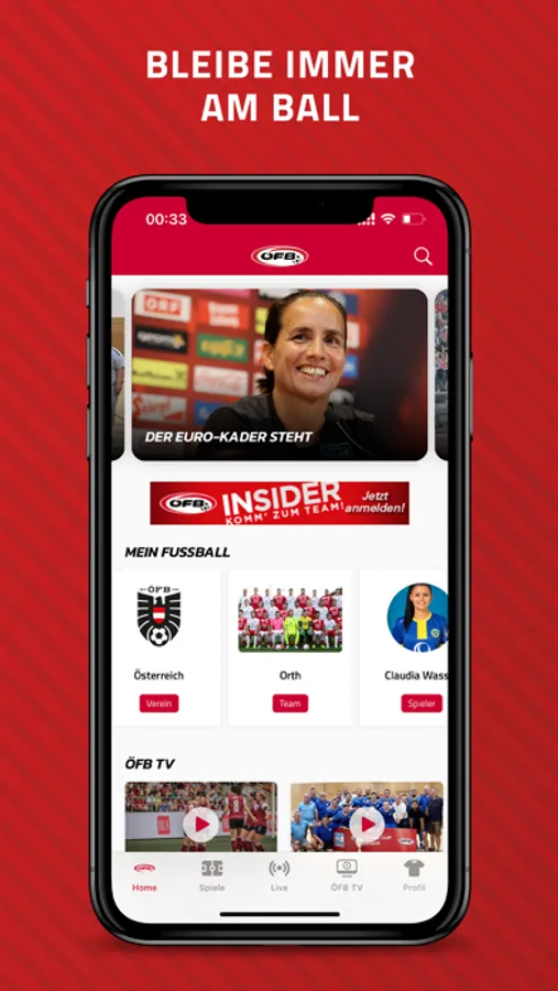Ab sofort versäumst du in der ÖFB App keine News rund um die rot-weiß-roten Nationalteams und die wichtigsten ÖFB-Bewerbe, wie beispielsweise aus dem UNIQA ÖFB Cup, der Planet Pure Frauen Bundesliga und der 1. ÖFB Futsal Liga, sowie allgemeine Themen des Österreichischen Fußball-Bundes. Darüberhinaus bist du selbstverständlich auch im Nachwuchs- und Breitenfußball immer up to date.
