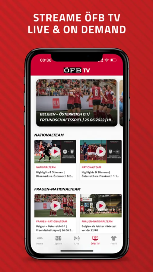 Du möchtest keine Livestreams aus dem UNIQA ÖFB Cup, der Planet Pure Frauen Bundesliga, der 1. ÖFB Futsal Liga, dem Nachwuchs- und Breitenfußball verpassen? Kein Problem, du kannst jetzt auch alle ÖFB TV Live-Übertragungen direkt in der ÖFB App streamen. Zusätzlich stehen dir die aktuellsten und beliebtesten Videos rund um unsere Nationalteams jederzeit auf Abruf zur Verfügung.