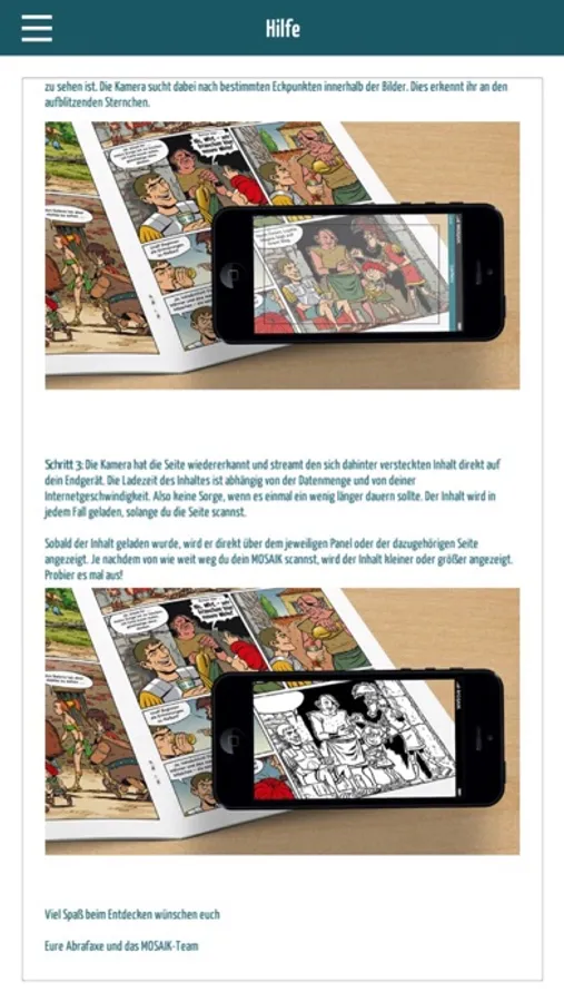 Diese Seiten könnt ihr mit unserer neuen kostenlosen App “MOSAIK Magic” scannen und dann passieren interessante Dinge auf