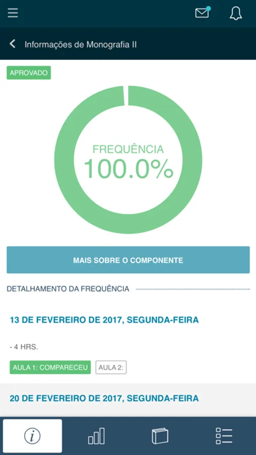- Informações sobre componentes curriculares, notas, materiais de apoio e trabalhos;