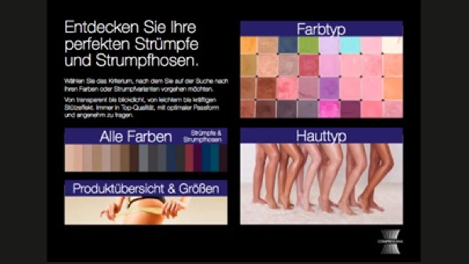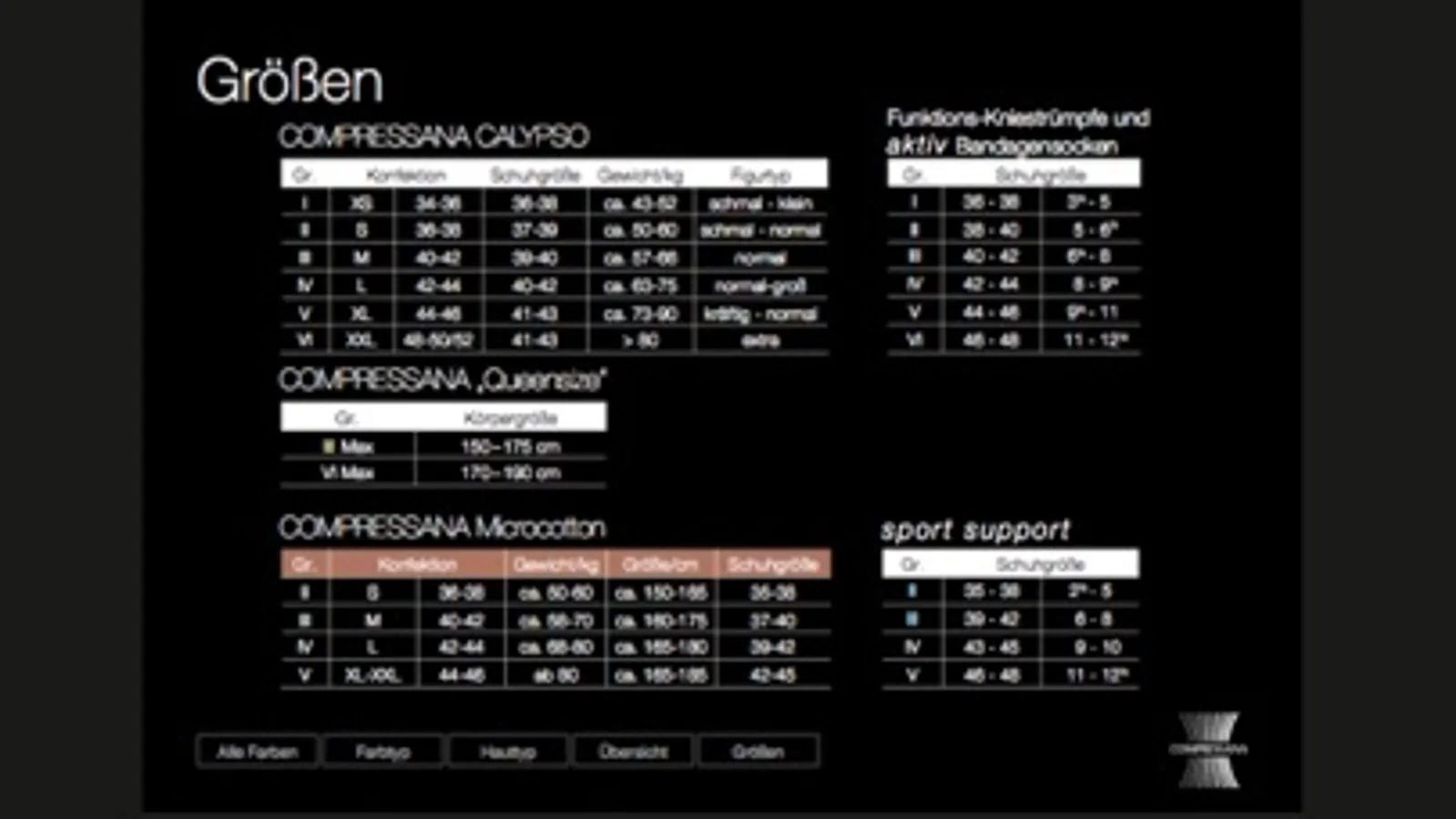 COMPRESSANA ist ein Hersteller von innovativen Kompressions- und Stützstrümpfen sowie Strumpfhosen. Auch Funktionsstrümpfe mit Natur- und Hochleistungsfasern, Bandagen und Gesundheitssocken gehören zum großen Sortiment. Top-Qualität, was die medizinische Wirkung angeht, optimaler Tragekomfort und modische Aspekte gehen bei COMPRESSANA Hand in Hand – für gesunde und schöne Beine!