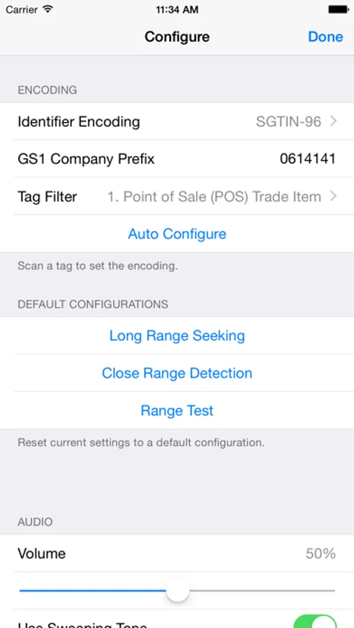 With Hex or ASCII encoding selected a useful, in-built tag scanning screen generates a list of nearby tags, ranked by signal strength to quickly provide a target identifier when demonstrating or familiarising yourself with the operation of the App.