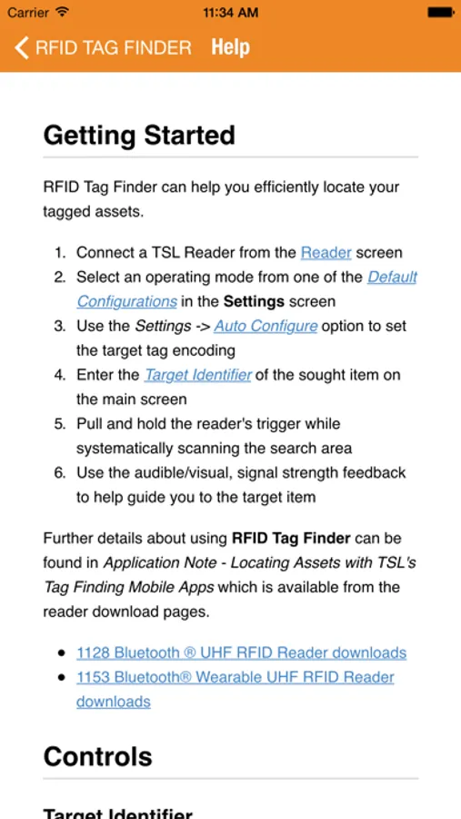 Please note that to explore the full capabilities of RFID Tag Finder requires the TSL 1128 Bluetooth UHF RFID Reader or other TSL ASCII2-compatible UHF reader.