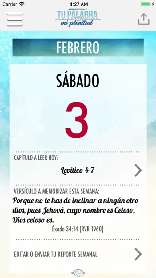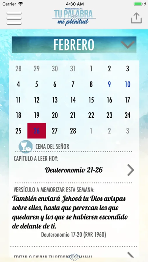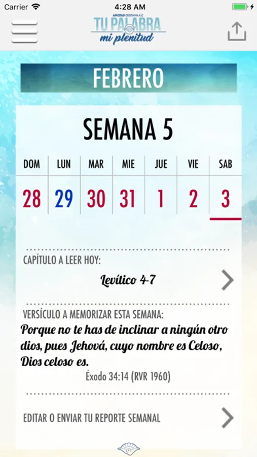 En la aplicación no solo podrás leer y compartir en tus redes sociales las lecturas diarias de la Palabra de Dios, también podrás generar los reportes semanales sobre que te ha hablado Dios en la semana.