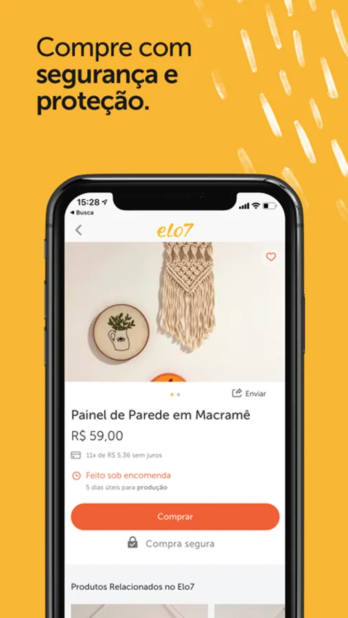 - Encontre milhares de produtos fora de série via o buscador do Elo7 ou selecione uma das 22 categorias de produtos do aplicativo.