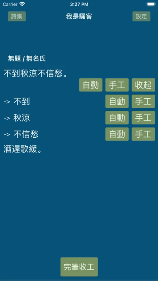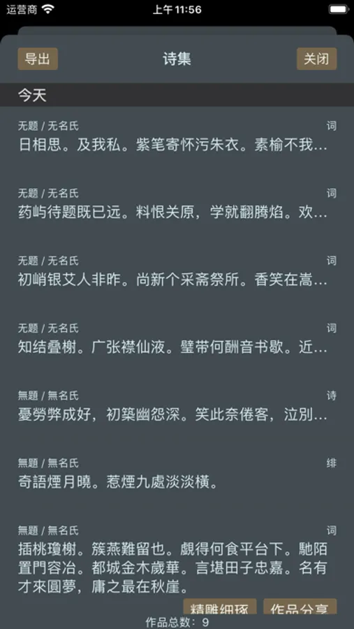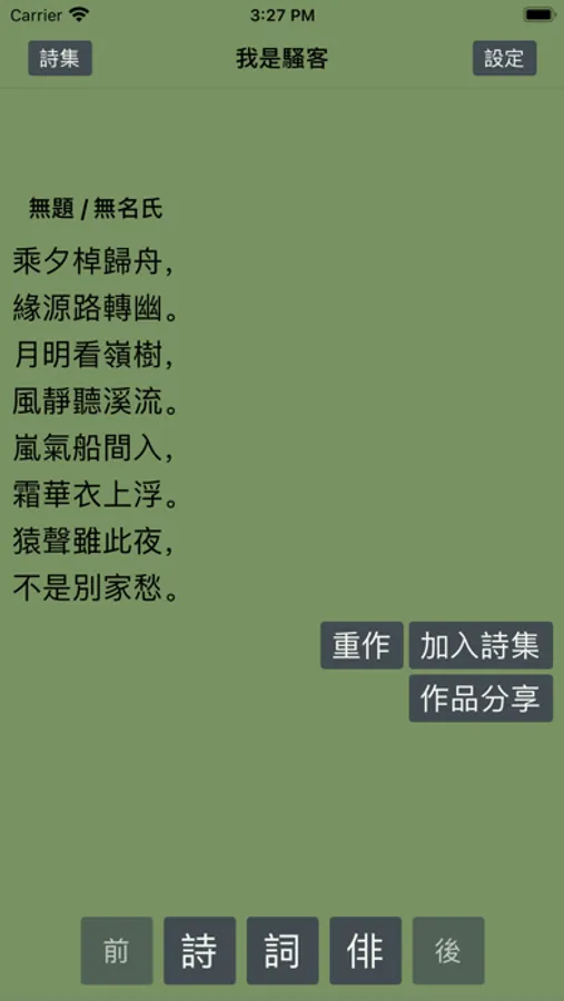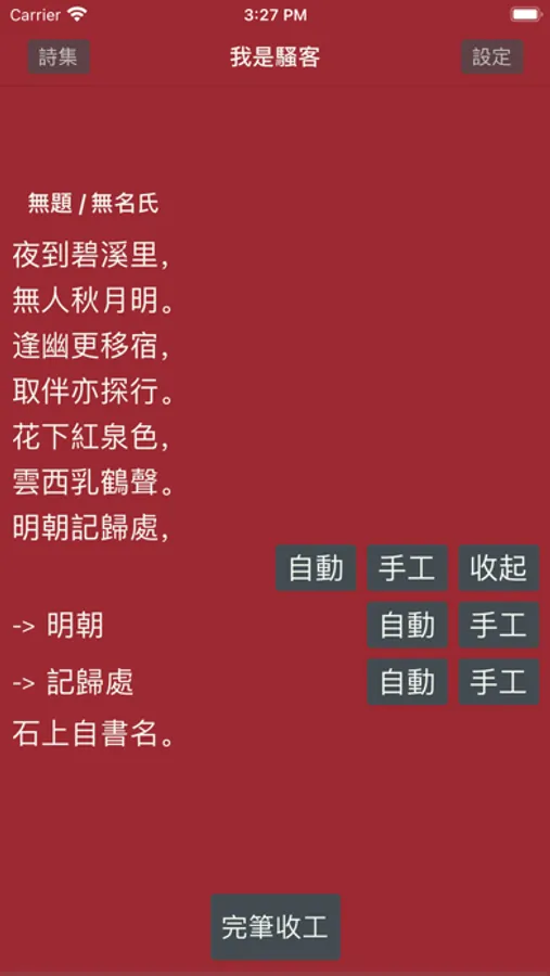 Poem Maker is an intersection of culture, art and technology. It is used to generate poems that follow Tang Poetry style/pattern as well as Japanese Haiku, which brings you back to thousands of years ago and makes you be overwhelmed by ancient wisdom.