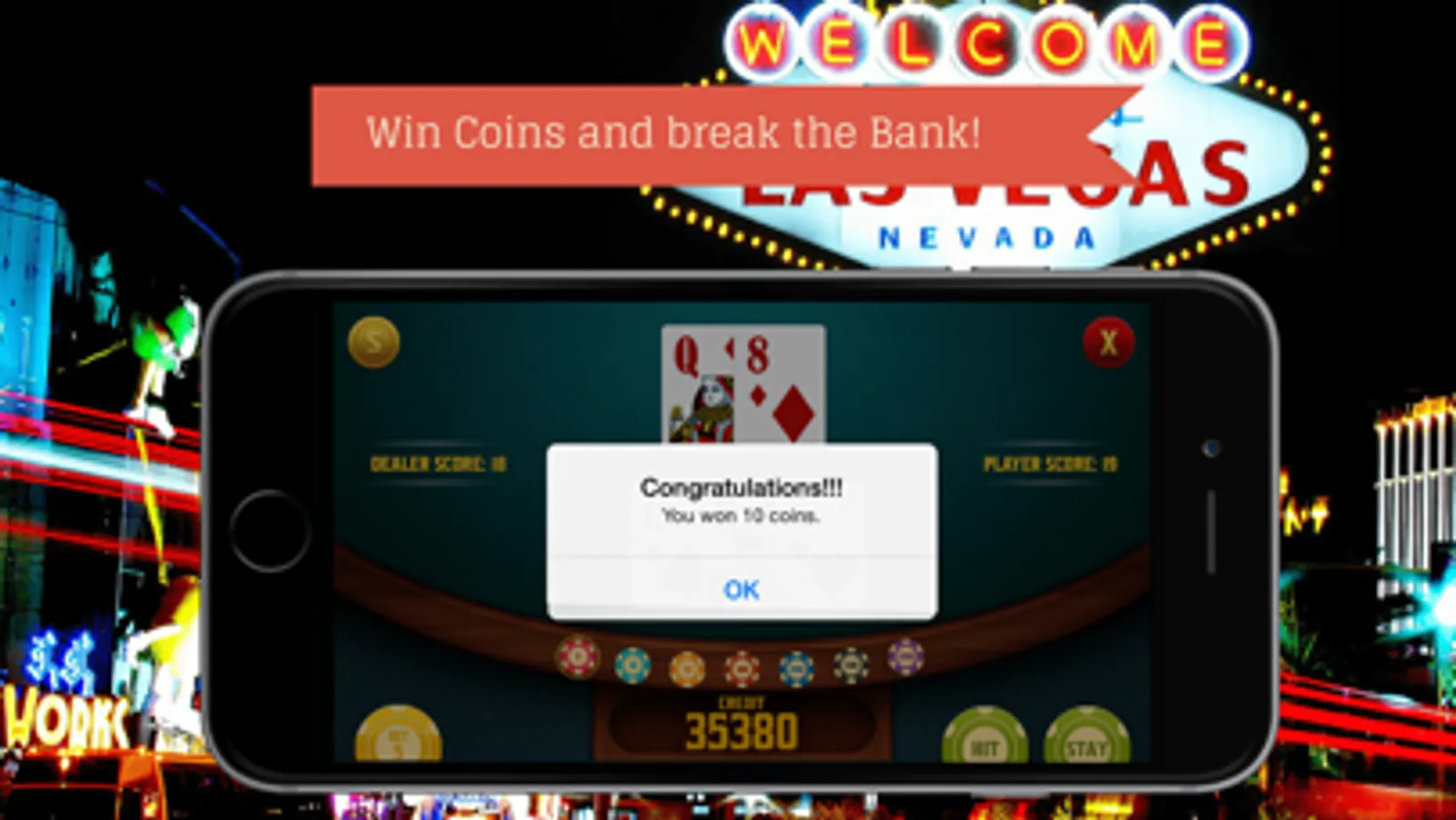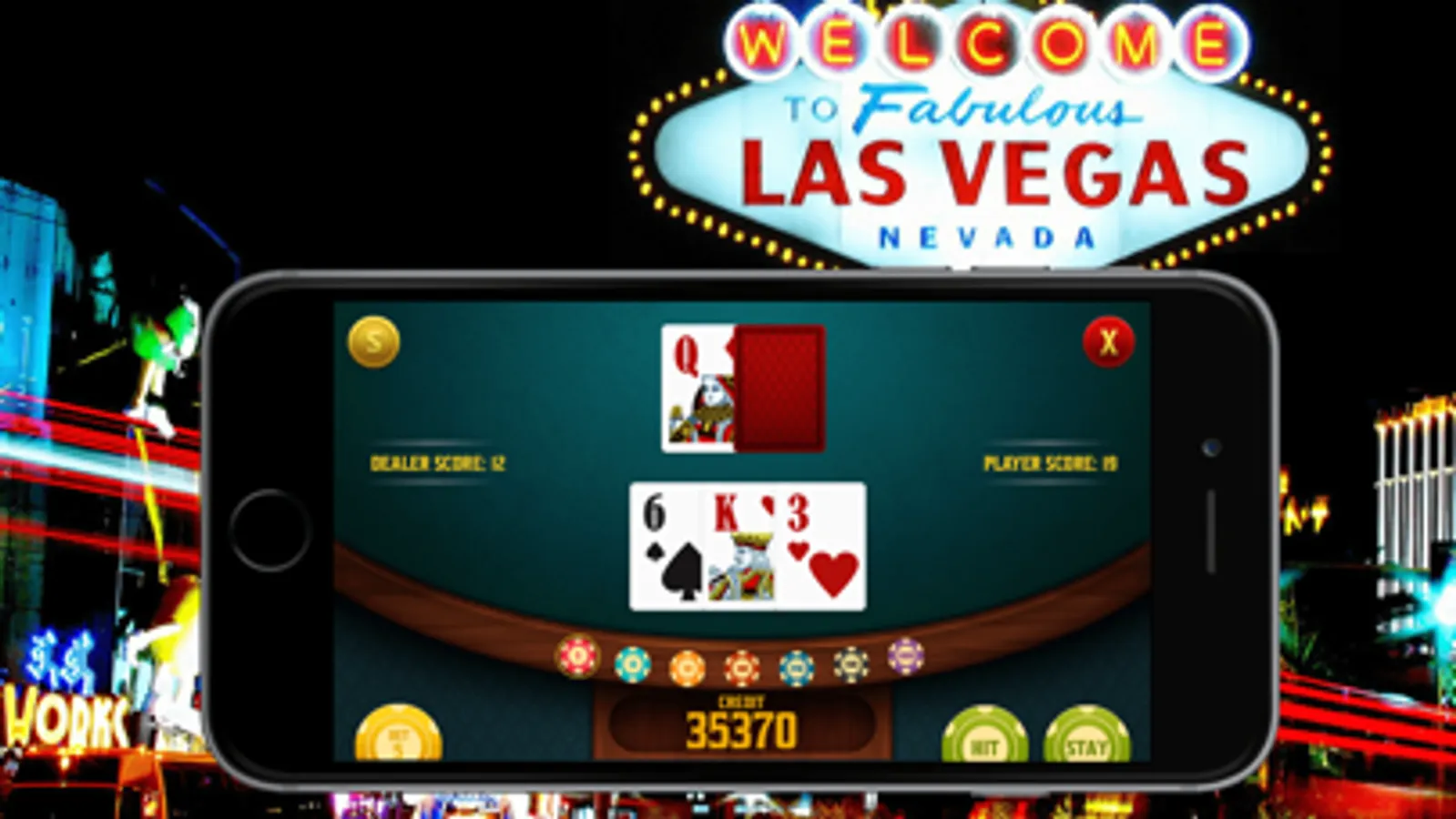* Tap chips, cards and table to play blackjack as if you were at the casino