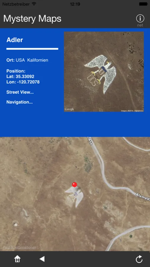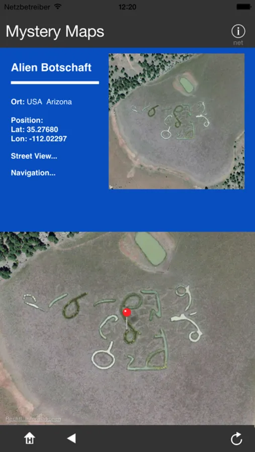Mystery Maps shows extraordinary, strange, rare, strange map sections of our earth. The diversity of crop circles go on letters up UFO objects. All data incl. GPS coordinates have been compiled into a database and optically adjusted. You can view the object in a map, look around there by Street View or navigate to them.