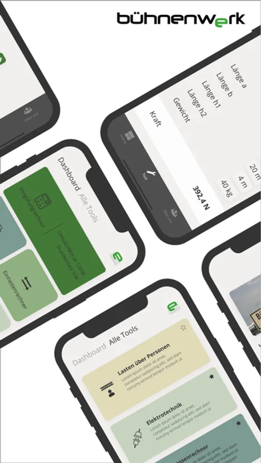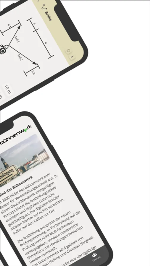 Die neue bühnenwerk App ist die zweite Auflage unserer „Toolbox für Veranstaltungstechniker“. Sie leistet dir beispielsweise Hilfestellung in der Dimensionierung von Anschlagsseilen, Rundschlingen und Sicherungsseilen, lässt dich Einheiten innerhalb von 7 Dimensionen umrechnen oder errechnet gemeinsam mit dir deinen Tages- und Stundensatz. Entdecke diese und noch viele weitere Funktionen unserer App.