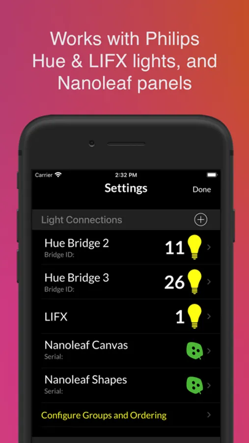 Connect to Philips Hue Entertainment, LIFX, and Nanoleaf Light Panels and take command of your music & entertainment lighting needs. Customize one of over 100+ professionally-designed lighting effects using the app's 3 unique lighting controllers. Light DJ Pro has been used in many creative applications, including special effects for home DJs, house parties, stage & video productions, holiday decorations, mood lighting for bars & restaurants, haunted houses, or just to create the ultimate music listening experience in your living room. Light DJ Pro is the #1 app for configurable entertainment effects for smart lighting.