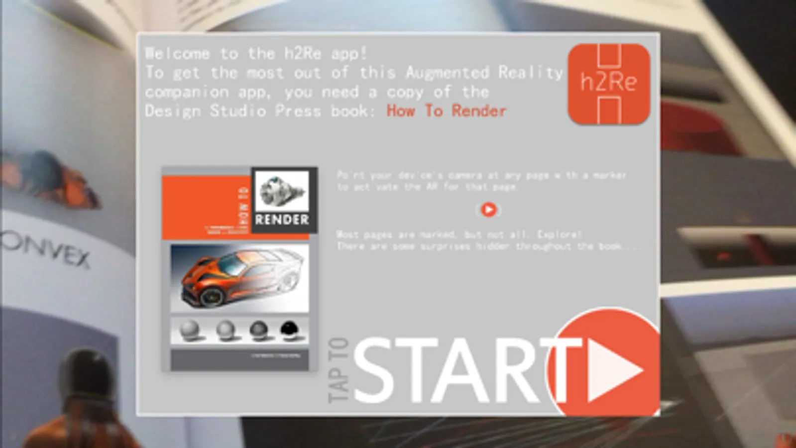 A physical copy of How to Render is required to get the most out of the h2Re app.