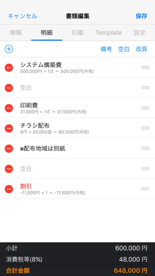 見積書→納品書→請求書→領収書へと簡単な操作にて転記可能