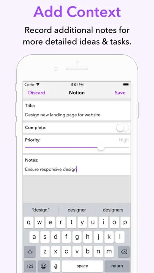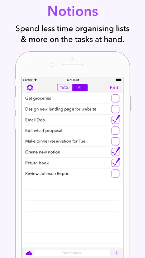 Notions is a simple and elegant task manager that enables you to quickly record your thoughts and ideas. Just open Notions and begin typing to enter a new entry. Simple, quick and easy!