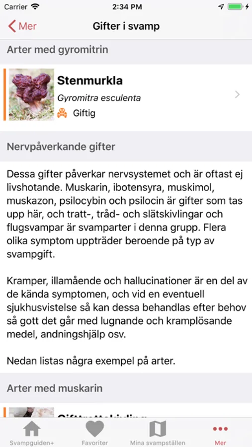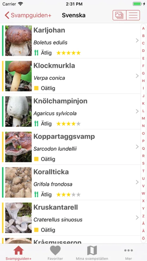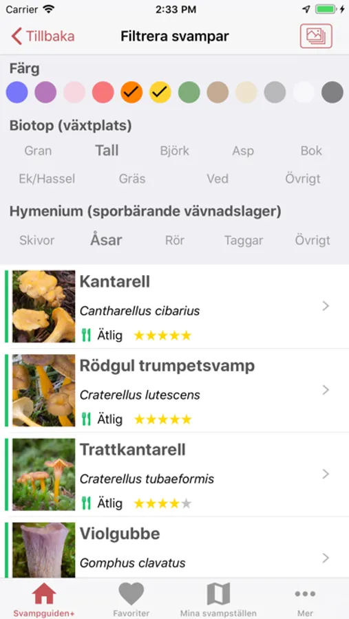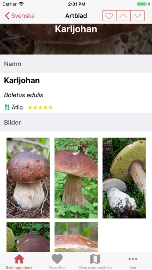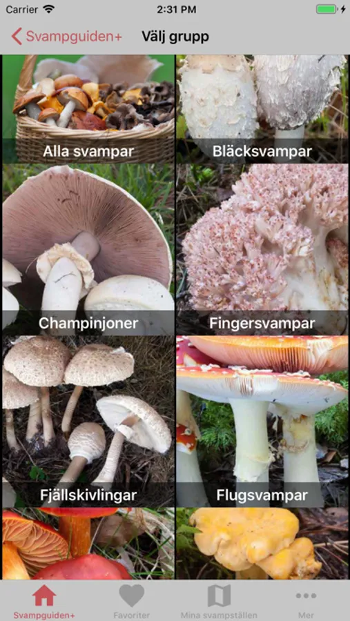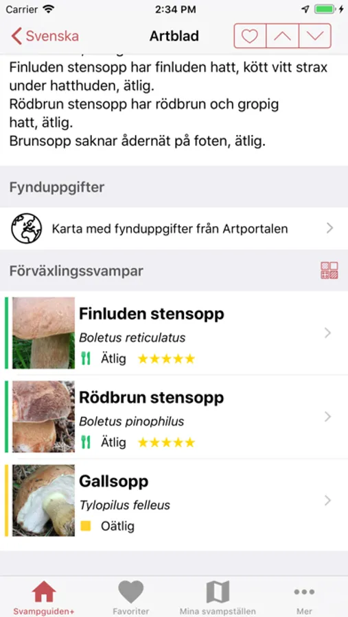 * Smarta funktioner så som filtrering på olika attribut och den klassiska svampnyckeln för att hjälpa till med artbestämning.