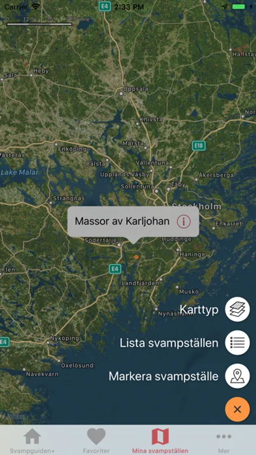 * Spara dina svampställen med hjälp av iPhones inbyggda GPS och kartfunktioner för att enkelt att hitta tillbaka när som helst. Du kan även lägga till foton och kommentarer till dina svampställen, samt om du är snäll, dela dina svampställen via e-post eller SMS till dina bekanta.