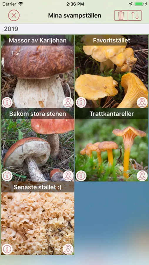 * Dina markerade svampställen och favoritsvampar lagras om du vill på ditt iCloud konto och synkroniseras på så sätt mellan alla dina enheter.
