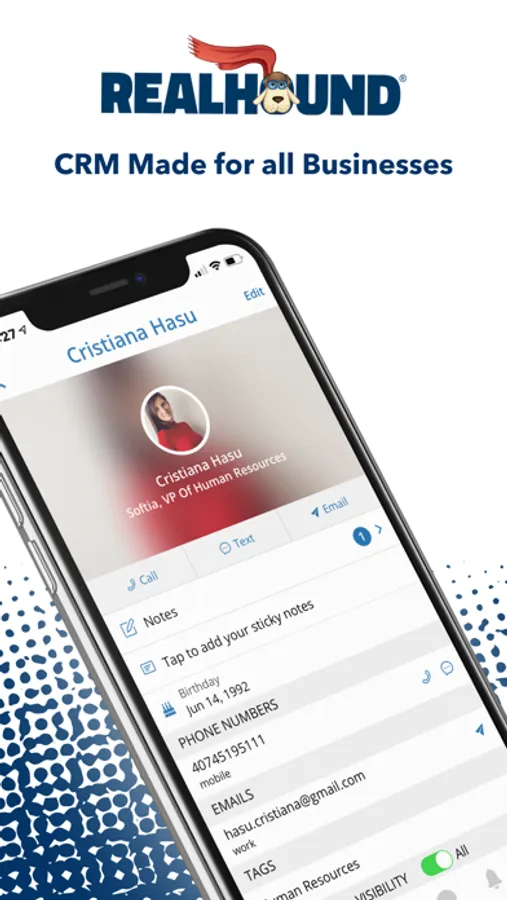 • Import contacts from your phone to populate Realhound’s mobile CRM