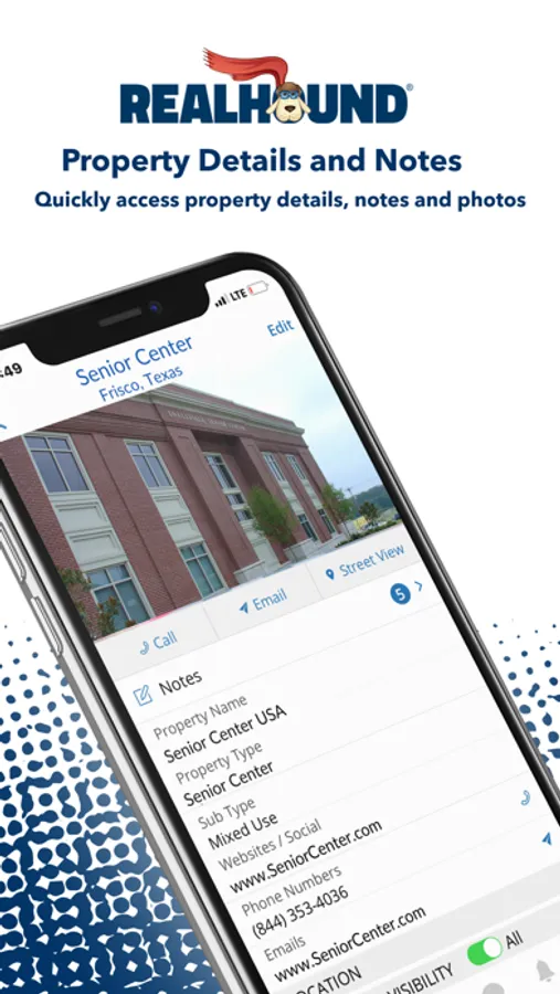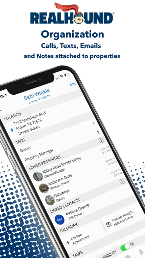 • Track your properties and tie them to their contacts and notes in Realhound’s mobile CRM